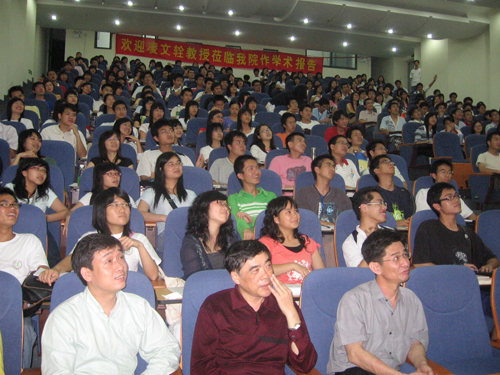 为了庆祝我院建院十五周年,响应教育部2007年一号文的精神,我院工商管理系特邀请我国著名心理学家、人力资源管理专家、我国行为科学和组织行为学的最早开拓者之一、原中国科学院心理研究所副所长、暨南大学人力资源管理研究所所长、现暨南大学管理学院博士生导师凌文辁教授和全国政协委员,中国心理学会理事、我国著名的心理学家、人力资源管理专家、中国科学院心理研究所博士生导师方俐洛教授来到我院举办题为“人力资源管理过去、现在和未来”的专题学术报告会。4月23日晚的图书馆报告厅座无缺席,很多的同学和老师早早地就来到了报告厅,以聆听大师的精彩的讲演。