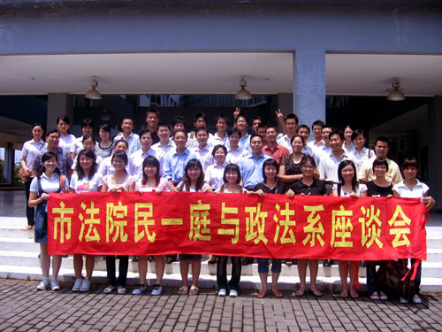本次座谈会主要围绕着“法律人生,精彩人生”这一个主题进行。会上我院王江水副书记要求政法系学生在学习法律的过程中,要明确学习目的,思考怎样才能从法的角度为社会服务,使社会问题得到解决。接下来,东莞市法院陈葵副院长也提出了自己的观点,她认为法是用来维护社会秩序的,无论是选择做律师还是选择做法官,都要具备职业责任感,这样才能拥有一个“法律人生,精彩人生”。市法院刘应琪庭长也围绕这次座谈会的主题畅谈了自己学习法律的经验,他认为法律是一门需要终身学习的学科。我院政法系法学教研室主任郑玉敏教授则认为“问题是没有一个固定解决方法的,很多东西是需要我们不断地去学习思考,然后形成自己的某种法律思维”。
