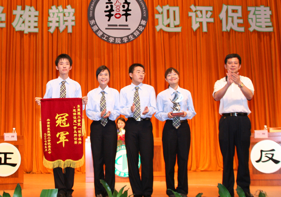 当晚,首先进行的是本次比赛的3、4名决赛,对阵双方为化学生物工程系代表队和师范部(艺术系)代表队,师范部(艺术系)代表队技高一筹,战胜了化学生物工程系代表队,获得了本次比赛的第三名,化学生物工程系的周德全同学获得本场比赛“优秀辩手”称号。接下来进行的是工商管理系代表队与中文系代表队的颠峰对决,双方辩手围绕“有/无知者无畏”的辩题,引经据典,旁征博引,你来我往,针峰相对,为观众送上了一场精彩的唇枪舌战。最后工商管理系代表队以非常微弱的优势胜出,获得了本届辩论赛的冠军,中文系代表队屈居亚军,中文系的方丽冰同学获得了决赛“最佳辩手”称号。此外,中文系、机电(建筑)工程系、化学生物工程系等获得了“优秀组织奖”。李建中教授对两场比赛进行了详细地点评。
