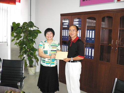 黄碧莲同志代表支部党员向机建系党总支送去爱心捐款,用于资助机建系三名思想上进、学习优秀,但生活困难的学生党员。她鼓励在座的预备党员和入党积极分子,要珍惜今天来之不易的学习机会,努力在“党员的理想、责任、能力和形象”方面下功夫,心存远志,奋斗成才。