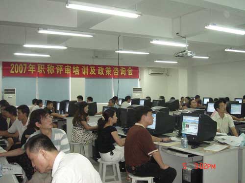今年省教育厅首次采用了网上申报系统,该系统既给申报工作提供了便利,也带来了挑战。网上申报填写步骤多、项目杂,加上系统不成熟、不稳定,教职工在填写过程中往往出现这样或那样的问题。因此,本次培训把网上申报列为重点,除了编印一人一册的《职称网上申报系统操作说明书》、《职称申报须知》等材料外,培训还借助多媒体设备对网上填报作了生动的现场演示。培训期间,相关工作人员还对今年职称申报的政策问题做了解答。