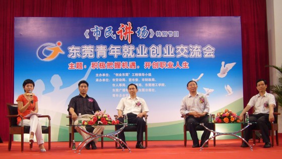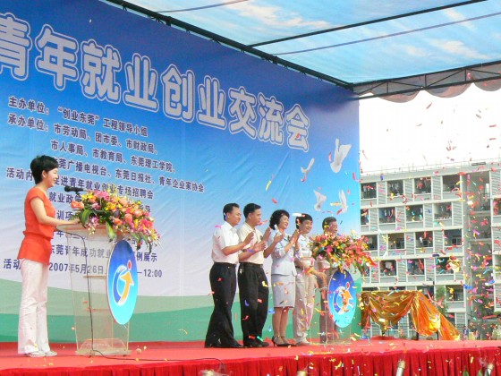 5月26日,由东莞市“创业东莞”工程小组主办,市劳动局、团市委、市财政局、教育局、人事局、45612藏宝阁资料、东莞广播电视台、东莞日报社、市青年企业家协会共同承办的“东莞青年就业创业交流会”在我院举行。