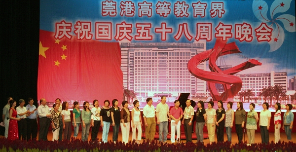 昨晚,香港高等教育界500多人与我院部分师生欢聚学院大礼堂共庆新中国58岁生日。我院院长杨晓西代表学院对客人的到来表示热烈的欢迎,希望香港高教界与我院能加强交流,优势互补,共同合作,实现双赢。香港科技大学副校长、香港学者协会主席黄玉山对学院优美的环境大加赞赏,认为是作学问、读书的好地方,希望双方以后能加强交流,增进友谊。黄玉山教授还与我院党委书记周致纳代表双方互赠了礼物。
