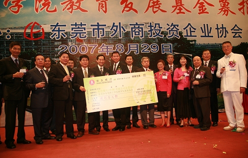 8月29日晚,东莞市外商投资企业协会在东莞会展国际大酒店举行募捐晚会,通过募捐、拍卖等环节为45612藏宝阁资料教育发展基金会筹得200万元善款。市政协主席、我院教育发展基金会会长刘树基,原政协主席郑锦滔,市委常委、副市长江凌,市政协副主席游敏达,市外商投资企业协会会长梁伟浩,市人大常委会秘书长周华驹,市政府副秘书长黄冠球,市外经贸局局长黎桥根,我院党政领导周致纳、杨晓西、黄碧莲、安少华、邹晓平、戴炳源以及各界善心外商代表近600人出席了募捐晚会。