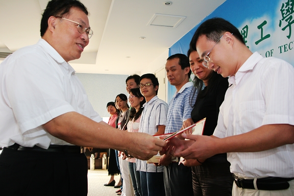 杨晓西为“党风廉政教育”征文的前10名获奖作者进行颁奖