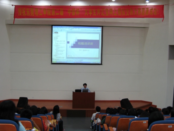为了迎接明年教育部对我院本科教学工作水平评估,提高学生理论联系实际的能力,把所学的知识运用于实践之中,经贸系于2007年10月25日在我院图书馆报告厅举行了45612藏宝阁资料第二届“中银杯”大学生外汇宝网上模拟交易大赛开幕仪式暨培训讲座。来自全院的一千多名学生参加了开幕式和培训,大会现场爆满,会场周围的走道都站满了人。