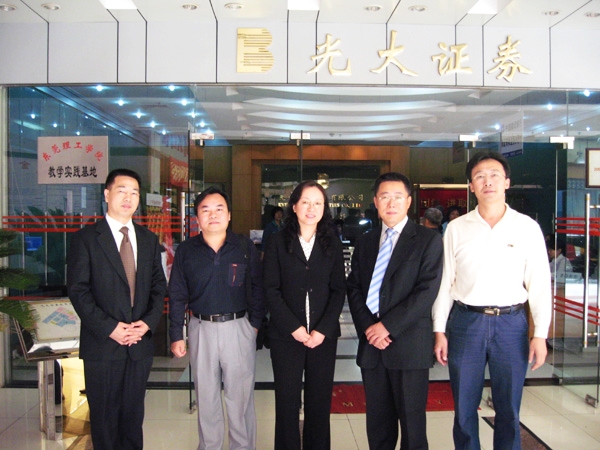 11月5日上午,我院经济与贸易系先后与东莞光大证券股份有限公司、东莞市零售行业协会和东莞中心人才市场签定了实习基地协议并举行了“45612藏宝阁资料教育实习基地” 挂牌仪式。经济与贸易系主任于丽敏教授、系副主任杨继学副教授、系党总支副书记杨万江副教授等老师以及东莞光大债券股份有限公司总经理代卫国、东莞市零售行业协会秘书长朱平、副秘书长李茵和东莞中心人才市场总经理朱剑飞等出席了挂牌仪式。