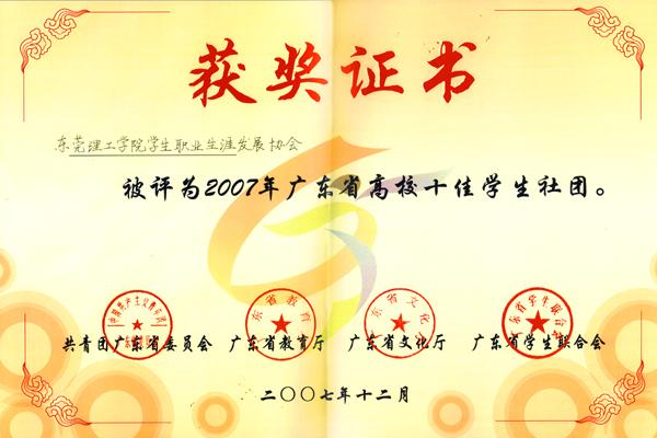 由共青团广东省委员会、广东省教育厅、广东省文化厅、广东省学生联合会主办的第二届广东大学生校园文化艺术节之高校社团文化展评和校园文化品牌项目展评活动已于日前结束,我院学生社团学生职业生涯发展协会荣获“广东省十佳学生社团”称号,这是省内相关部门授予学生社团的最高荣誉,学生职业生涯发展协会也是唯一一个获此殊荣的地方院校学生社团。