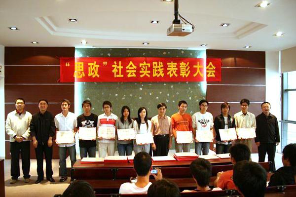 3月13日下午,我院“思政”社会实践颁奖表彰大会在经管楼隆重举行。会议由思想政治教研室主任孙艳萍主持,党委副书记王江水、学生处处长邢大立、政法系主任李洪君、教务处副处长刘建等领导出席大会并亲自为获奖学生颁奖。李洪君教授在会上发言,指出了本次“思政”社会实践所取得的良好成绩及对思想政治教育工作的重要意义,对获奖学生给予了殷切鼓励。 本次“思政”社会实践以“新莞人调查”为主题,我院广大学生积极参与,在实践能力锻炼和理论成果汇总方面都取得了显著成果,对促进我院的评建工作也具有积极意义。