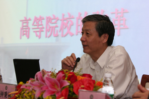 钟秉林教授报告的题目为《高等教育的发展与高等院校的改革》,他从高等教育面临的形势,高等教育的办学观念、定位、目标,发展规划、策略与举措等方面,以北京师范大学的办学为例,对高校办学的教育思想和教育观念作了全面阐述。他认为,高校在办学过程中转变教育思想,更新教育观念,应该树立先进的教育观和教育价值观,树立科学的发展观,树立现代教学观,树立富有时代特色的人才观和质量观;要实事求是,科学定位,确定发展目标,实现多样化发展,要有一流意识,发展的内涵要清晰,切忌盲目地攀高就低。对于高校未来的发展,他认为要科学地制定发展规划与发展策略,要优化学科结构的调整与院系调整,积极探索多样化的人才培养模式与实施教学改革,高度重视科学研究,大力加强队伍建设,不断创新管理体制和机制,重视校园文化建设。