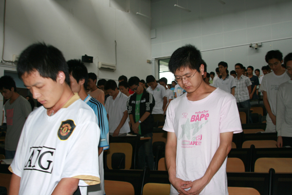 5月19日14时28分,全院师生员工向四川汶川大地震遇难同胞默哀3分钟