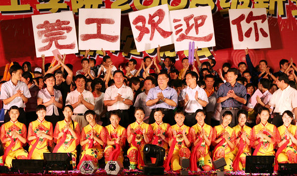 军训团老师联袂演唱《莞工欢迎你》掀起晚会高潮