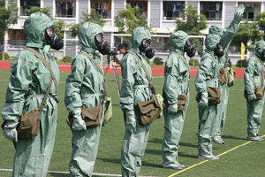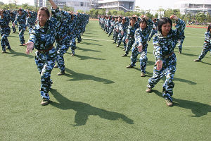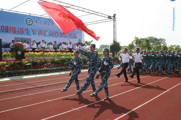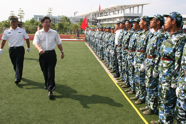 9月28日上午,我校2008级新生军训汇报表演暨开学典礼在运动场隆重举行。2700多名本专科新生顺利完成军训任务并举行汇报表演。学校党委书记周致纳检阅了受训新生。军训汇演上,军训团团长徐仕伟少校作了军训总结,对新生们在军训期间表现出不怕吃苦的精神表示满意。军训团政委、学生处处长邢大立宣布了军训各项评比结果。新生们在为期两周的军训中,进行了军事技能训练和军事理论教学外,还增加了反恐、防化、防震、防暴(女子防身术)等内容的学习。