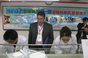 这是我省首次开展此类型的比赛,深圳大学化学化工学院副院长刘波教授任主任评委、省内各高校化学基础实验方面的专家组成了本次比赛的评委会,由各参赛院校的带队老师组成了竞赛裁判团。赛前,作为承办方,我校化学与环境工程学院在吸取了该院以前进行的四届校内基础化学实验技能大赛经验,认真制订了本次比赛实施细则和操作打分标准,为比赛在公平合理的氛围下成功地实施奠定了基础。