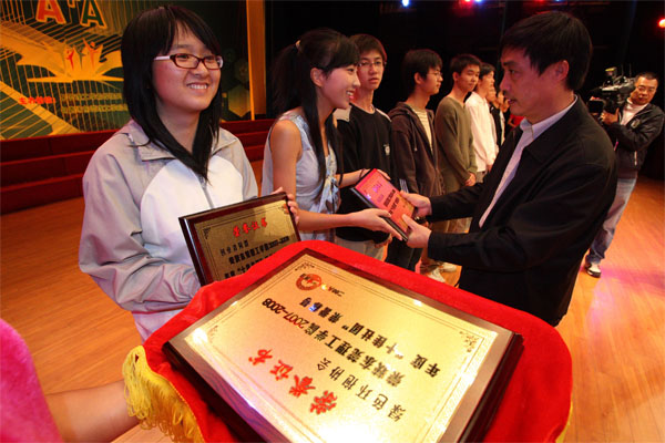党委副书记王江水出席了闭幕式,并为被评为2007-2008年度“十佳社团”社团颁奖。学生处处长邢大立为优秀社团干部颁奖、团委书记彭晓波向新任职的社团负责同志颁发聘书。
