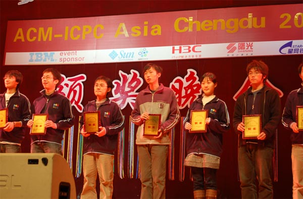 11月29日-30日,由国际大学生程序设计竞赛委员会、ACM-ICPC亚洲赛区指导委员会主办,成都民族大学承办的第33届ACM国际大学生程序设计竞赛亚洲区预选赛在成都举行。我校计算机学院06级学生朱斌、陈敏翼和外语系学生黄俊威组成的参赛队伍在本次大赛中获得三等奖,为我校在国际级竞赛级别上赢得新的荣誉。