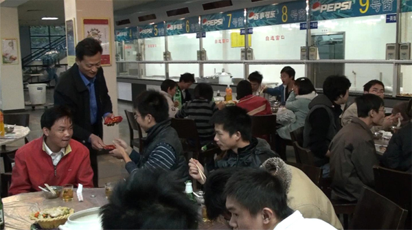 1月25日除夕夜,第一学生食堂张灯结彩,热闹非凡。伴着欢快的乐曲,戴炳源副校长和学生处、保卫处、后勤集团负责人与70多名留校大学生一起共话新春,同吃年夜饭。校党委书记周致纳特意打来电话,向留校过年的同学表示慰问。 电子工程学院大二学生云计民表示,“学校对留校过年的同学非常关心,对特困学生发放了慰问金。今天的聚餐更使我们有了回家的感觉。”