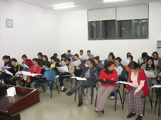 3月4日,我校教职工合唱团正式成立,并确定每周三晚为教职工合唱团活动时间。 昨晚,工会委员、师范学院汪莹副教授作指导老师对教职工合唱团进行了培训指导。到现场的队员有41人。汪老师对到场的队员进行了分声部的分组,进行练声,并讲了唱歌发声的注意事项,接着对歌曲《送别》进行了分声部试唱。
