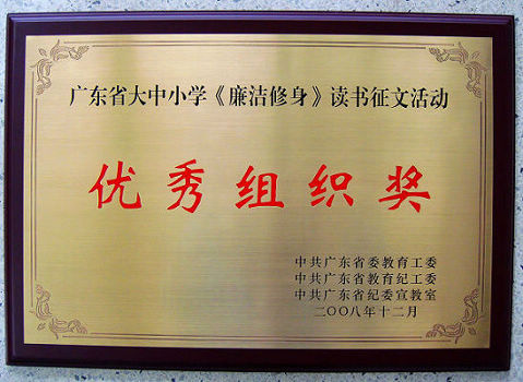 2月27日,2009年广东省教育纪检监察工作会议在广州举行。校党委副书记、纪委书记黄碧莲同志参加了会议。会上,省委教育工委、省教育纪工委、省纪委宣教室表彰了广东省大中小学《廉洁修身》读书征文活动获奖单位和个人。此次活动共评出大学组“优秀组织奖”18名,我校是荣获“优秀组织奖”的18所高校之一;07商务英语班张瑞兰同学撰写的文章《有一位老人》荣获大学组一等奖,08会计(2)班杨佳同学撰写的文章《北斗星之光晕—廉、洁、修、身》荣获二等奖,05广电(1)班袁志敏同学撰写的文章《一颗廉洁的心》荣获优秀奖。