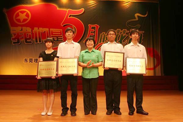 当晚,还对2008—2009学年“红旗团总支”获奖单位、“红旗学生会”获奖单位、“先进志愿服务站”获奖单位、主题团日活动“优秀组织奖”获奖单位、“十佳团日活动”获奖单位、“红旗团支部”获奖单位、“先进团支部”获奖单位以及“优秀团干部”、“优秀学生会干部”、“优秀团员”、 “志愿服务工作先进个人”、“优秀志愿者”等先进集体和个人进行了表彰。
