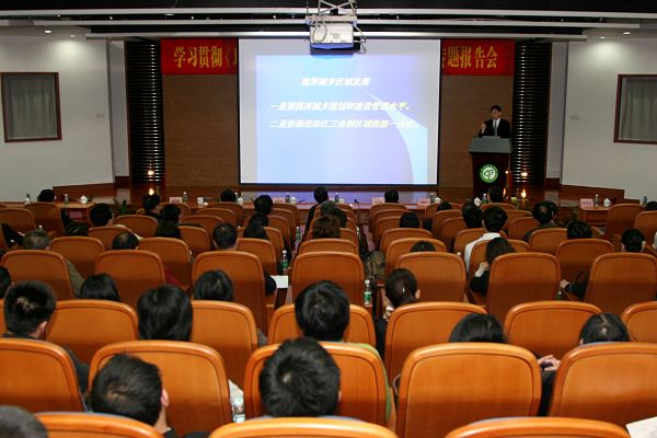 会上,曾凡光教授结合珠三角地区改革发展的历史背景和重大意义,对《纲要》确立的战略定位、发展目标、重点任务和政策举措等方面进行了全面的剖析和深入的阐述。他认为《珠江三角洲地区改革发展规划纲要》具有三个前所未有:党中央、国务院对《纲要》重视程度前所未有,出台时间之快前所未有,贯彻落实力度之大前所未有。报告中,他从编制和落实《纲要》的重要背景、重大意义、主要任务和原则要求等四个方面对《珠江三角洲地区改革发展规划纲要》进行了详细解读,思路清晰,内容丰富,加深了与会人员对《纲要》的理解和把握。曾凡光结合我校的实际情况,对我校应该如何贯彻落实《纲要》提出了建议,认为既要完整准确地学习贯彻《纲要》提出的指导思想、战略定位、发展目标、主要任务和政策措施,又要注重充分运用《纲要》提供的巨大空间,把原则性与灵活性统一起来,并建议大力加强素质教育、创新教育、个性教育、职业教育、诚信教育和心理教育。