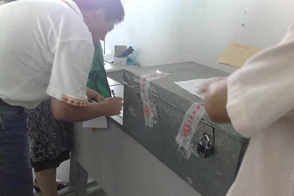 工作人员在开启密封试卷