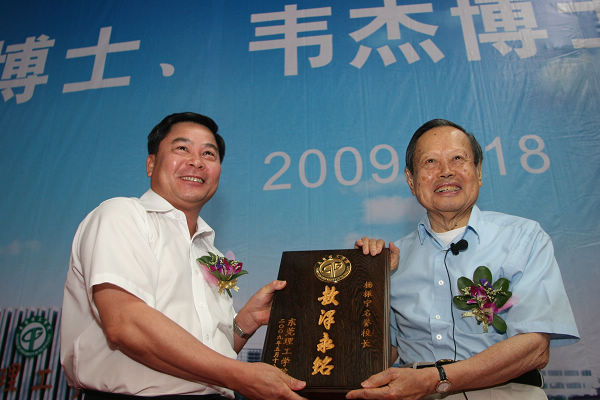 校党委书记周致纳向名誉校长杨振宁博士赠送纪念品