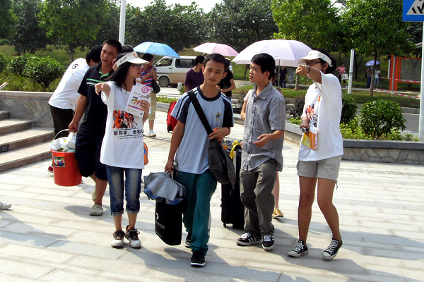 投入到本次迎新工作的学生骨干共500多名,他们着装统一,顶着炎热酷暑,以高涨的热情出色地完成了工作。
