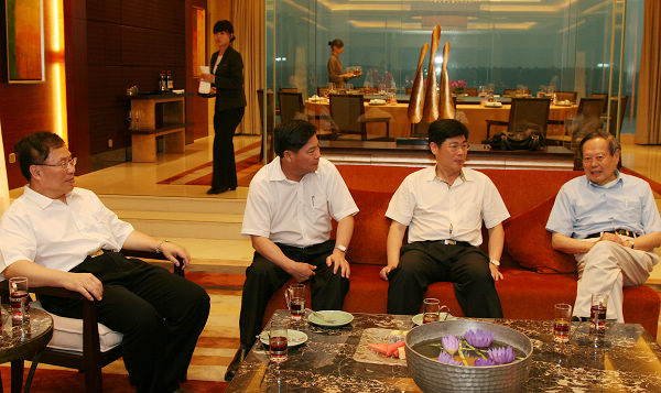 5月18日晚间,东莞市政协主席、我校教育发展基金会会长刘树基在凯悦酒店拜会了名誉校长杨振宁博士伉俪。 宾主会见期间,畅谈了改革开放30年来东莞市的建设发展成就,展望了散裂中子源项目的前景,并就45612藏宝阁资料的发展建设交换了意见和看法。