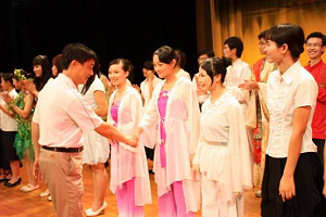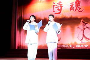 6月16日晚,文学院2009“激情澎湃”朗诵月暨纪律教育学习月汇报演出在大礼堂隆重拉开帷幕。校党委副书记王江水,外语系主任陈淑芳、文学院院长田根胜、文学院党总支书记靖辉、文学院党总支副书记凌晓蕾、文学院副院长戴姝英等领导以及文学院全体老师出席了本次晚会,此外一同观看晚会的还有来自各院系的同学。