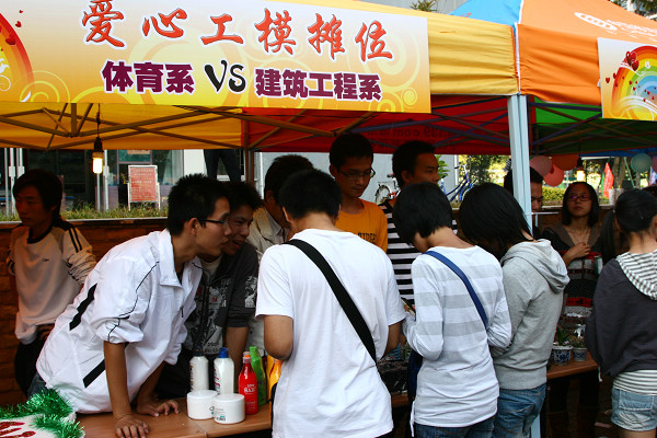结合学校的实际,工商模拟市场与学校团委合作,开展爱心工模公益活动。