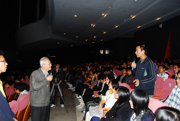 报告会上,蔡院士用生动的语言,真挚的感情通过讲述自身的经历,向同学们展现了一位追求科学,崇尚科学,并为之献身的科学家形象。蔡睿贤院士勉励同学们要做到“三好”,就是身体好,学习好,工作好,认为同学们只有做到身心健康,才能认真学习。他还结合自身经历,教导同学们要与老师互相促进,要有独立学习工作的能力,不能仅依靠老师,当代大学生应该有创新精神,有“追求真理,打破沙锅问到底”的求知精神。