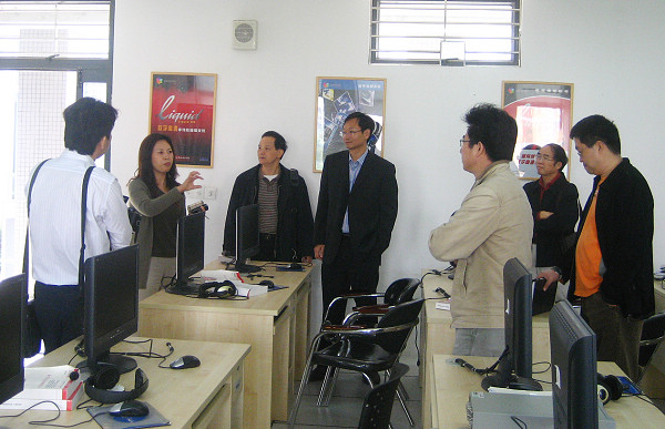 在校期间,贾天清还在教务处长王卫平、副处长刘健等的陪同下,参观了文学院广播电视新闻学专业演播室和非编实验室。