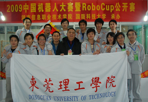 12月4~6日,我校组队参加了在湖南省长沙市举办的2009中国机器人大赛暨RoboCup公开赛。 在学校和机械工程学院的大力支持下,我校代表队经过半年多的精心准备和在赛场上的全力拼搏,在第一次参加此类比赛情况下,获得两个一等奖和四个二等奖的优异成绩: “莞工二队”在“机器人武术擂台赛无差别组”比赛中荣获一等奖,参赛队员:陈深明、蔡锐凯、胡亚,指导老师:许光辉、王卫平、邓君; “莞工四队”在“微软(MS)轮式微型机器人11:11仿真”比赛中荣获一等奖,参赛队员:吴耿才、郑伟新、周道洪、吴伟才,指导老师:许光辉、钟守炎、邓君; “莞工三队”在“机器人武术擂台赛仿人组”比赛中荣获二等奖,参赛队员:周淼杰、黄维闰、陈哲琼,指导老师:许光辉、邓君、黄泳波; “莞工一队”在“机器人武术擂台赛无差别组”比赛中荣获二等奖,参赛队员:陈奕彬、李瑞峰、王玉松,指导老师:许光辉、邓君、黄旭其; “莞工四队”在“微软(MS)轮式微型机器人5:5仿真”比赛中荣获二等奖,参赛队员:吴耿才、郑伟新、周道洪、吴伟才,指导老师:许光辉、邓君、卢盛林; “莞工三队”在“机器人武术擂台赛技术挑战赛”比赛中荣获二等奖,参赛队员:周淼杰、黄维闰、陈哲琼,指导老师:许光辉、邓君、张志坚。 我校选手在本次大赛中赛出了水平、赛出了友谊,推动了大学生科技创新和大学生工程训练活动,大大提高开放性实验室的利用率,为我校创建“卓越工程师”示范学校和应用型本科院校打下了一块坚实的基石。 中国机器人大赛是国内最具影响力、最权威的机器人科技大赛。 RoboCup公开赛是国际RoboCup机器人世界杯赛全球五大赛事之一。参加本次大赛的学校有清华大学、北京大学、浙江大学、国防科技大学、中国地质大学、中国海洋大学、南京大学、华中科大、山东大学、东北大学等54所高校。