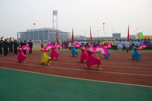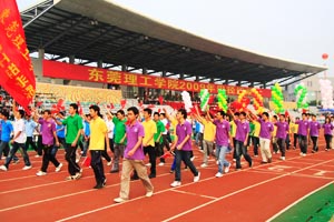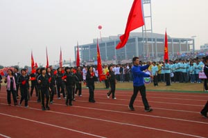 11月27日早上8:30我校2009年田径运动会在体育中心田径运动场隆重开幕,周致纳、杨晓西、王江水、黄碧莲、邹晓平等校领导,教务长林养素以及学校中层干部在主席台就座。