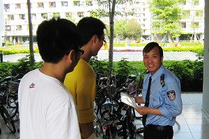 大家还冒雨骑自行车为学校各保安岗送去节日贺卡,还精心挑选了防晒霜作为贴心小礼物。慰问活动中,同学们与后勤工作人员以及保安岗执勤员工聊了很多工作上的问题,了解到了他们工作上的艰辛与难处。