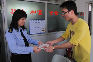 同学们将祝福带到学生公寓中心和保卫处