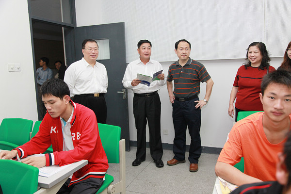 在检查完课堂教学后,周致纳、杨晓西等到设在行政楼五楼的教学观摩中心检查,并先后调看了多间课室的课堂教学视频信息。