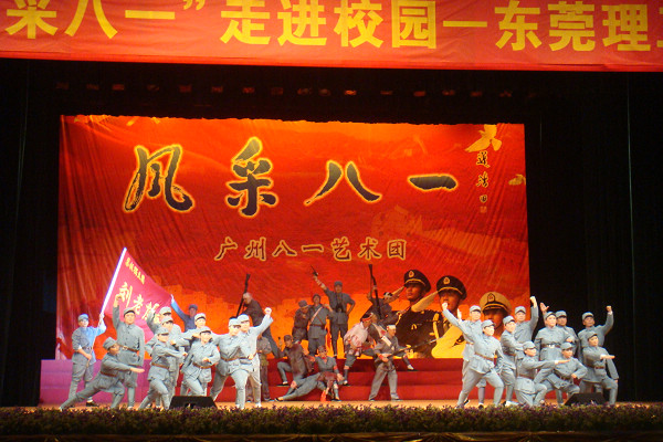 7月6日,广州八一艺术团走进我校,为我校师生带来了一场题为“风采八一”的专场演出。我校领导周致纳、杨晓西、王江水、黄碧莲、邹晓平、戴炳源,东莞市委宣传部副部长胡毅峰等莅临现场观看了演出,整个活动以弘扬革命精神为主线,诠释了八一的精神,充分展现了八一的新风采!