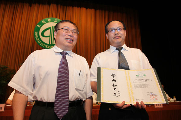 在5月14—15日召开的学科建设和科研工作会议上,学校对电子科学与技术学科的杨雷、化学工程与技术学科的范洪波、机械工程学科的孙振忠、计算机科学与技术学科的袁华强、中国语言文学学科的田根胜等5名第一批学科带头人颁发聘书,并举行《学科建设目标责任书》签订仪式。 在学校领导周致纳、王江水、黄碧莲、安少华、邹晓平、戴炳源,东莞市科技局局长何跃沛,东莞市社科联主席王思煜和600多名教职工的见证下,杨晓西校长向学科带头人颁发聘书,并逐一与他们签订《学科建设目标责任书》。 这5名学科带头人聘期为三年,从2010年5月起至2013年4月止。聘期内将完成《学科建设目标责任书》相关任务。 杨雷教授和范洪波教授分别代表学科带头人发言,表明了所带学科的努力方向和措施。