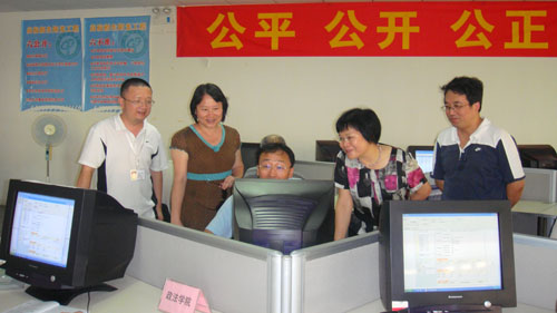 我校2010年招生录取工作于7月20日正式拉开帷幕。校党委副书记、纪委书记黄碧莲同志,纪委副书记、审计监察处处长汪璟同志与校招生办负责人一起亲临我校招生录取工作现场,向我校参与招生录取工作的各位工作人员了解招生工作情况。