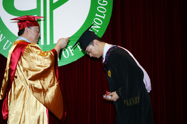 随后,校长杨晓西为获得学士学位的毕业生一一扶正流苏。