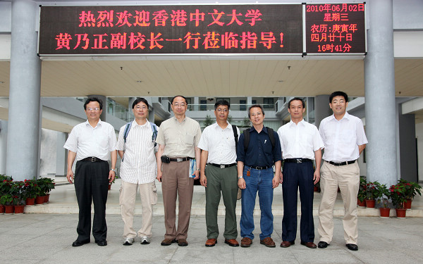 昨日,香港中文大学副校长、我校名誉教授黄乃正院士率队莅校参访。 黄乃正一行四人先后考察了我校化学与环境工程学院实验室、东莞市清洁生产科技中心;随行的周克勋教授和陈文初教授联合为化环学院学生做学术讲座,并与学生互动交流。 昨日午间,校党委书记周致纳、校长杨晓西宴请了黄乃正一行;宾主就科研合作进行了深入的探讨,并达成广泛共识。