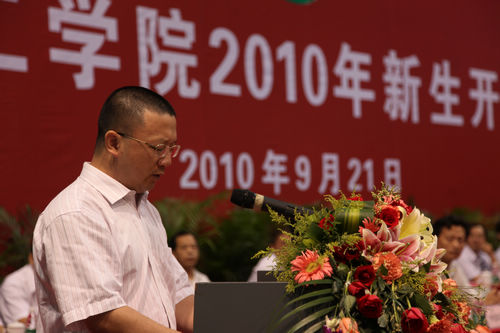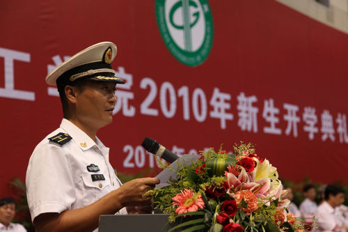 在2010级新生开学典礼上,军训团团长潘海军少校作了军训总结,对同学们在本次军训时间短、任务重、标准高的情况下能够以坚强的意志圆满完成军训任务表示充分肯定。他希望同学们能够把在军训中养成的良好作风、严明纪律运用到以后的学习和生活中,努力学习,不断提高综合素质,为社会发展做出更大的贡献。