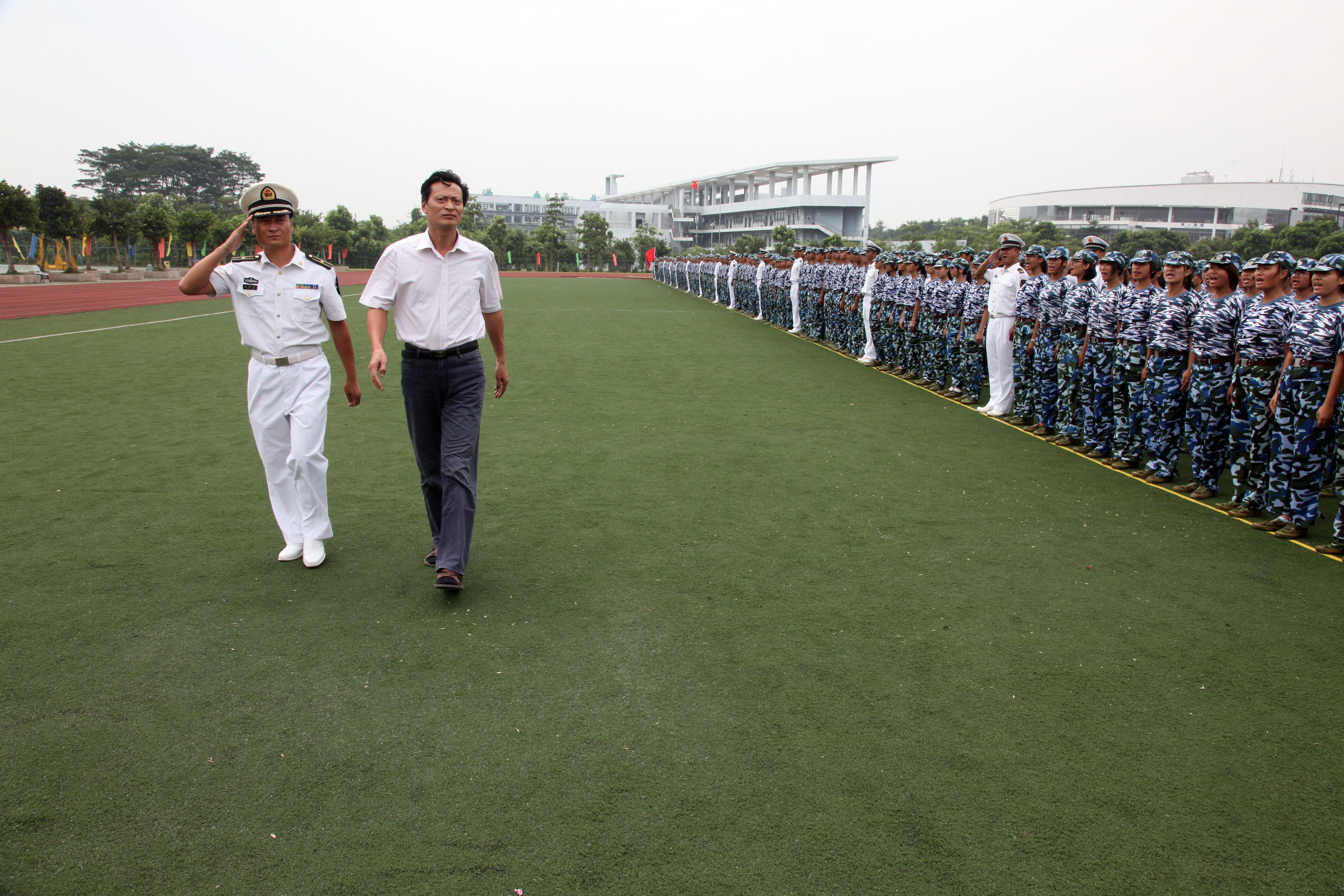 校领导向军训期间各项评比第一名获奖连队颁奖戴炳源副校长检阅军训团