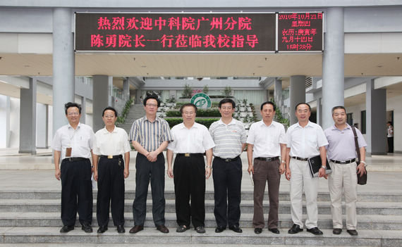 昨日下午,中国科学院广州分院、广东省科学院长陈勇,中国科学院广州分院、广东省科学院副院长黄宁生等一行四人来校考察交流。 校长杨晓西、副校长邹晓平接待了客人;并与客人就科研合作、研究生培养等议题进行了深入的、富有建设性的探讨。