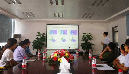 报告会后,与会人员与谢丰蔚博士就高分子材料结构设计、淀粉基导电材料应用、新型生物可降解高分子材料开发等内容开展了交流。