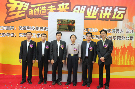 揭牌仪式后,优视科技副总裁韦东、北京活力天汇CEO兼天使投资人王江为学生作了创业讲座。讲座上,韦东结合自身经验忠告同学们,创业中要承受住各种压力,做好心理准备。王江在与同学们分享自己的创业投资经历时,建议同学们创业需慎重考虑。