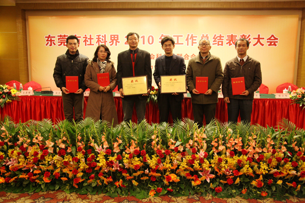 我校文学院、工商管理学院被评为“2010年度东莞市社科工作先进单位”;社会发展研究院邓宇鹏教授被评为“2010年度东莞市优秀社科研究者”,科研处陈毅华被评为“2010年度东莞市社科工作先进个人”;社会发展研究院谭裕华博士主持的“东莞‘三旧’改造重点问题研究”,工商管理学院李银满教授主持的“东莞纺织服装产业升级研究”共2个课题被评为“2010年度东莞市优秀社科立项课题”。