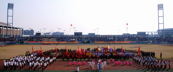 11月26日上午,我校2010年田径运动会在体育中心田径运动场隆重开幕。学校领导周致纳、杨晓西、王江水、黄碧莲、安少华、邹晓平、戴炳源和学校各机关部门、各院系负责人等出席了开幕式。